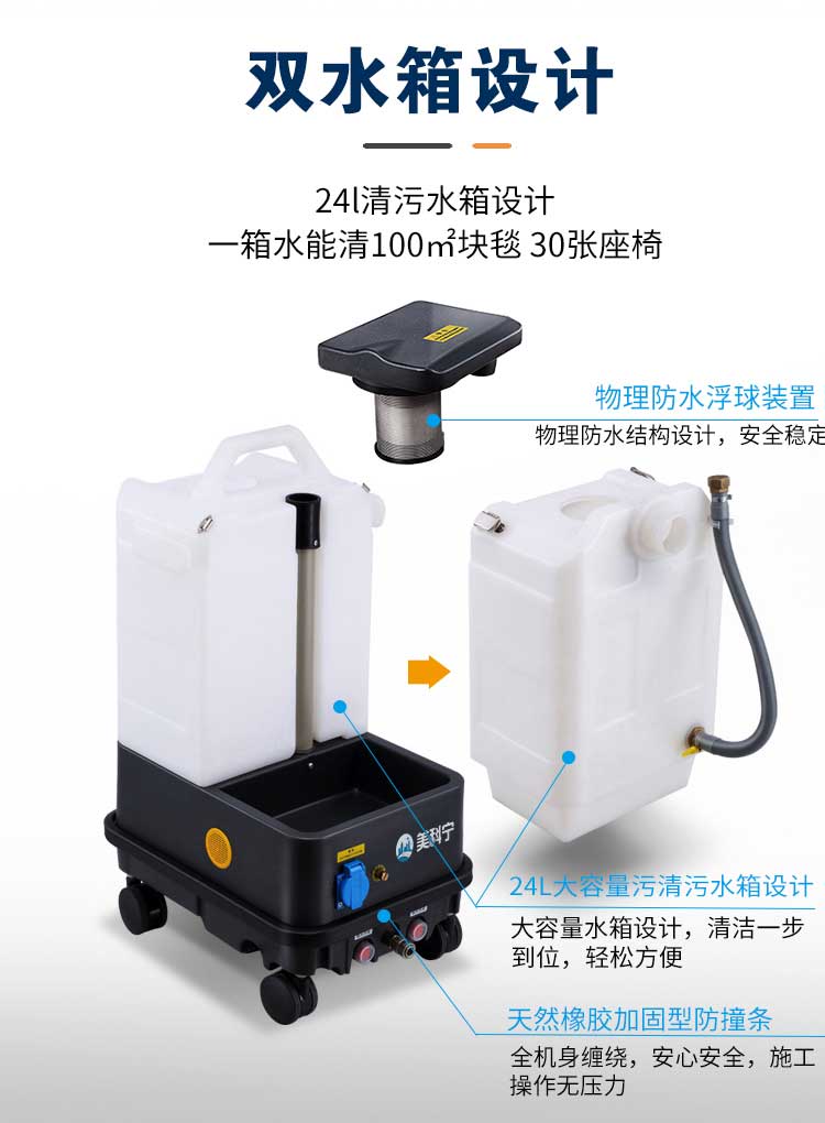 酒店商用喷抽一体家用小型清洁沙发窗帘床垫布艺多功能地毯清洗机美科宁JR-24E